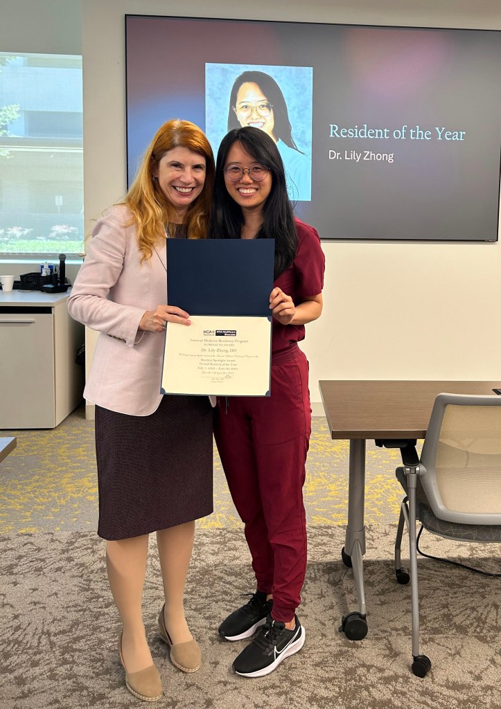 Finally, Dr. Dawoud introduced the Dr. Zaky Dawoud Journal Club Award. Established to honor the research legacy of her father, this award is given to one presenting pair each year on the merits of presentation quality, background research, teaching of methodology, and application to our own practice. The Dr. Zaky Dawoud Journal Club Award was presented to Lily Zhong, DO and Su-Ting Chen, DO for their presentation of the OCEAN study.