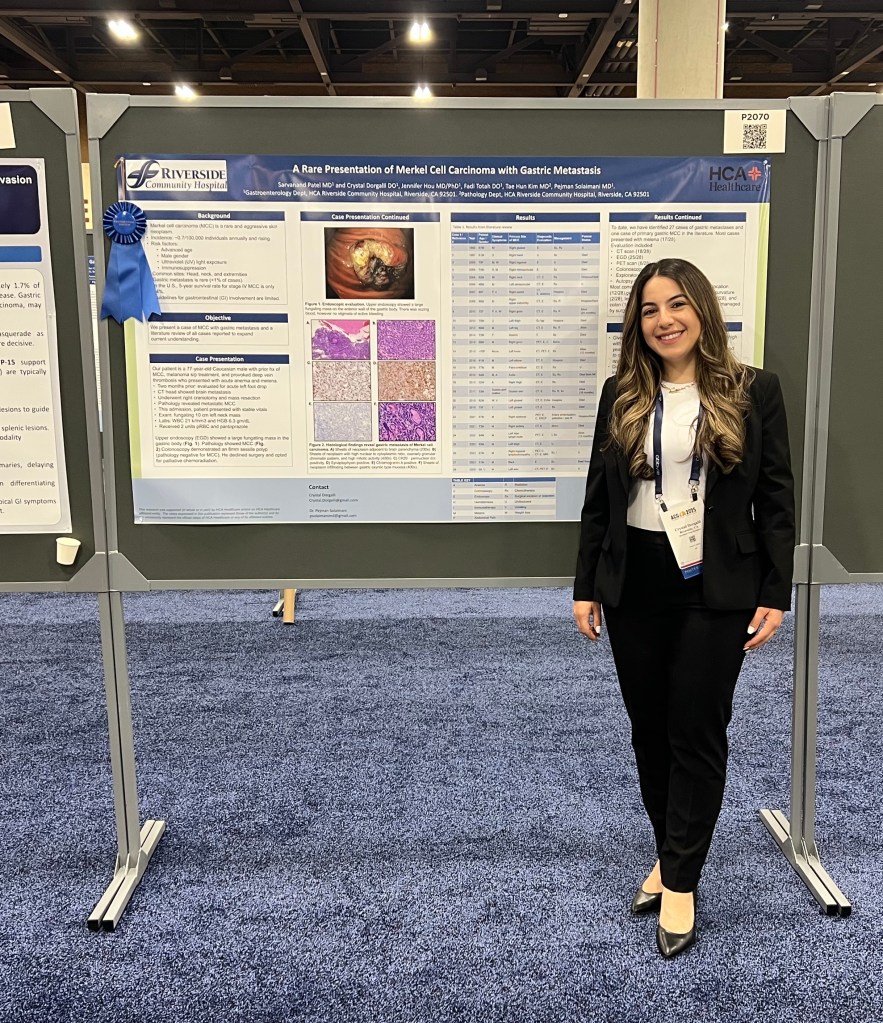 Her award-winning presentation was based on her case report, “A Rare Presentation of Merkel Cell Carcinoma with Gastric Metastasis.” This is a remarkable accomplishment, and we are so proud to have her represent RCH.